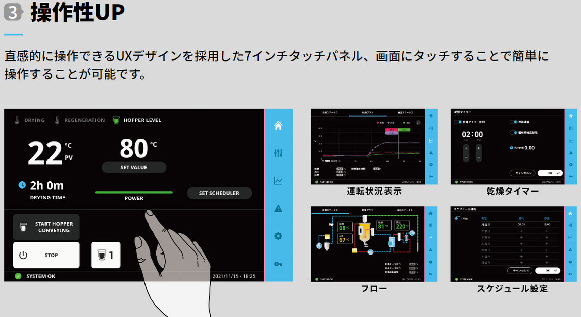 | ※2 材料仕込量はペレットに換算してのバージン嵩密度0.6kg/Lの場合です。本カタログの仕様は改良のため予告なく変更されることがあります。 | |||||||