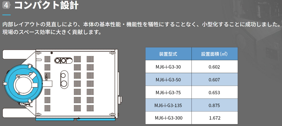 | 装置型式 | MJ6-i-G3-30 | MJ6-i-G3-50 | MJ6-i-G3-75 | MJ6-i-G3-135 | MJ6-i-G3-300 | |